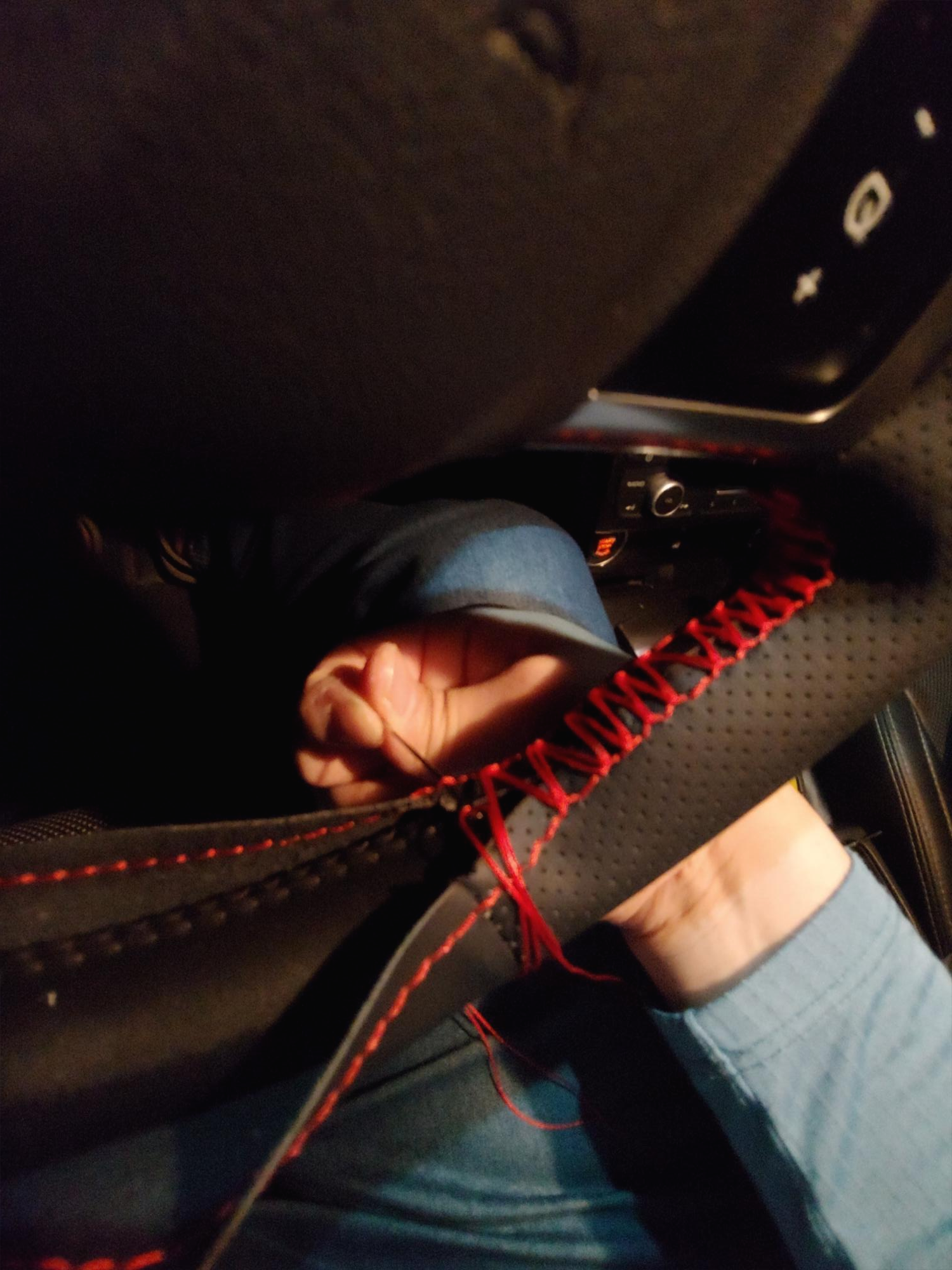 가죽이 핸들을 감싸기에 조금 짧은 느낌이라 손으로 잡고 바느질 하느라 손에 힘을 많이줘서 손이 좀 아프네요..