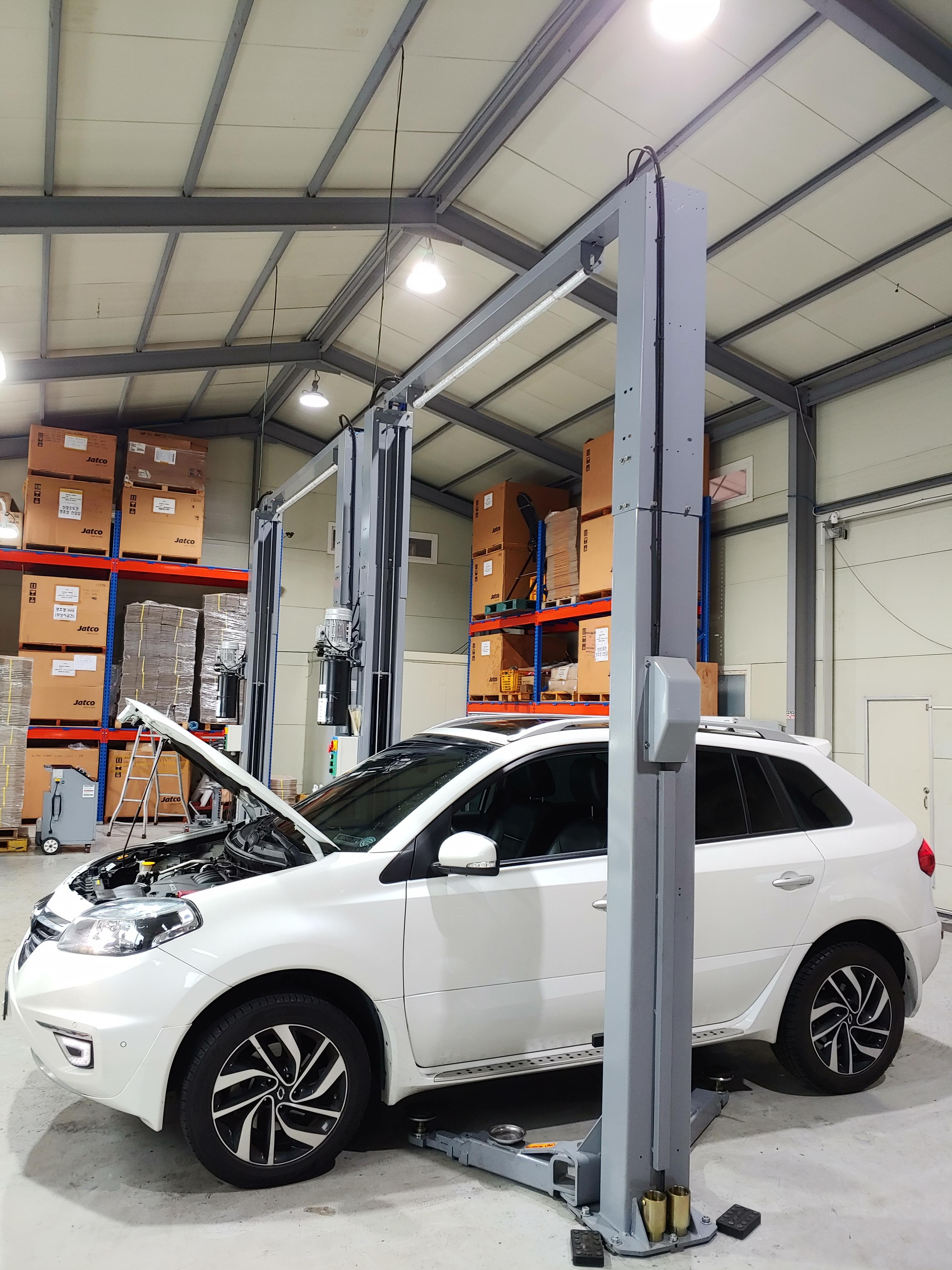 아래 사진 반대쪽이 출입구이고 작업을 위해 서비스동으로 이동했습니다. 서비스동에는 리프트가 2개가 있습니다. 평일은 미션오일 교체 예약을 오전 3타임 1대씩, 오후 3타임 1대씩 받고 토요일은 오전 3타임 2대씩 받는다고 합니다. 평일은 미션 작업이 있을 수 있어 리프트 한대를 비워두고 주말은 오전만 영업을 하기때문에 미션 작업을 할 시간이 안되어 리프트 2대를 모두 사용한다고 합니다.
