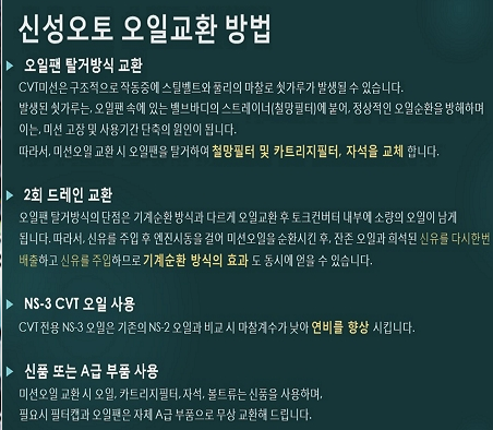 아래는 신성오토 홈페이지에 올라온 오일교환 방법 안내문입니다.