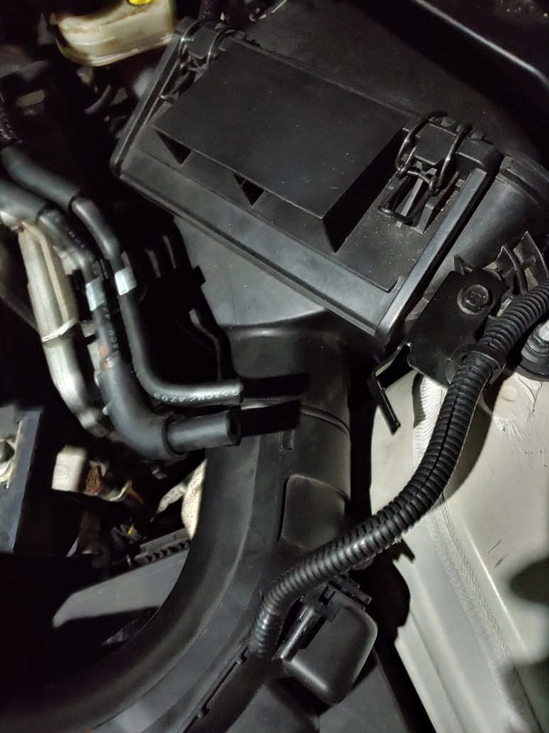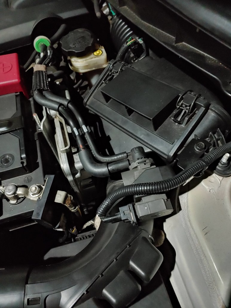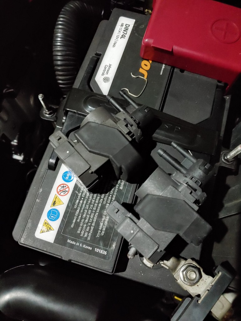 솔레노이드밸브는 운전석 에어클리너 통 옆에 있습니다. 딱 봐도 이건 교체하기 쉽게구나 하는 생각이 들거에요.