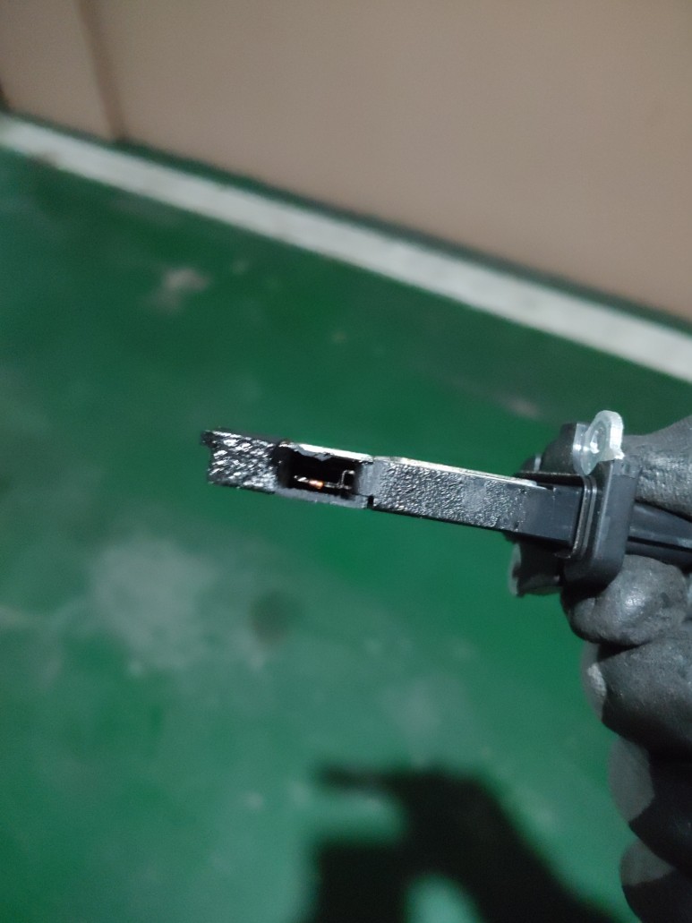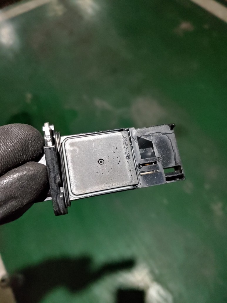 분리한 에어플로우센서 상태입니다. 차량에 따라 상태는 다르지만 저는 제법 이물질이 껴있었습니다.