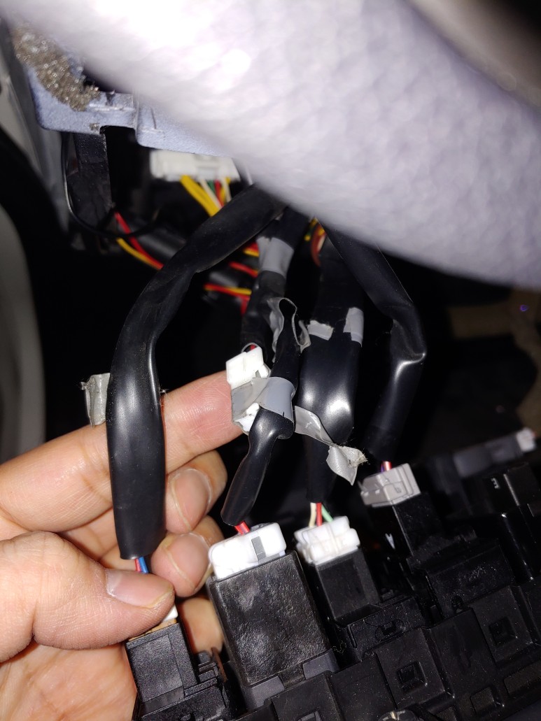배선을 보면 조사각 조절스위치에 연결할 배선이 다른 배선에 테이핑되어 있습니다.