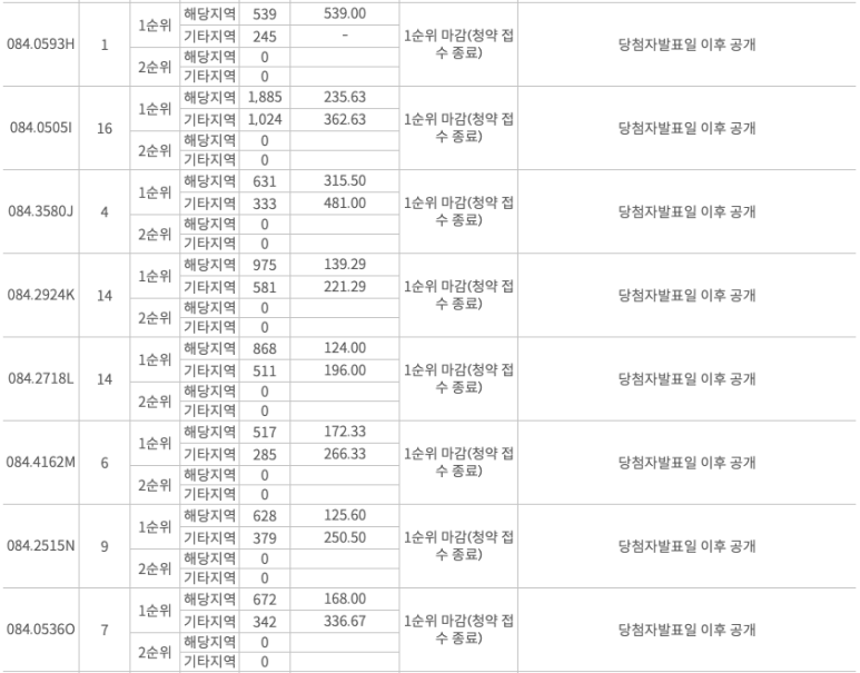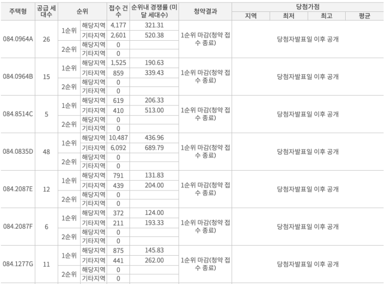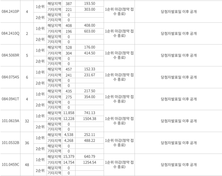 84타입 8억 내외, 101타입 9억 후반의 분양가라 개인적으로 84타입 경쟁률이 더 높지 않을까 생각했는데