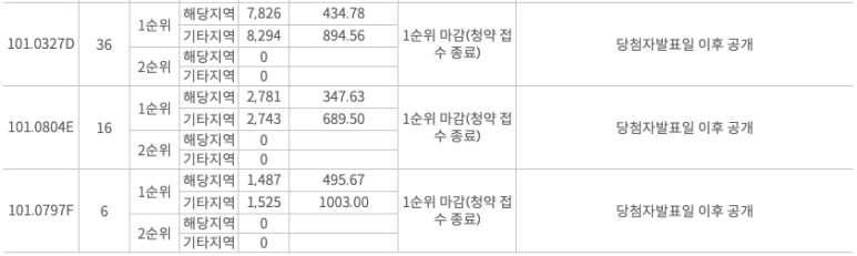 추첨제 때문에 101타입의 경쟁률이 더 높았습니다.