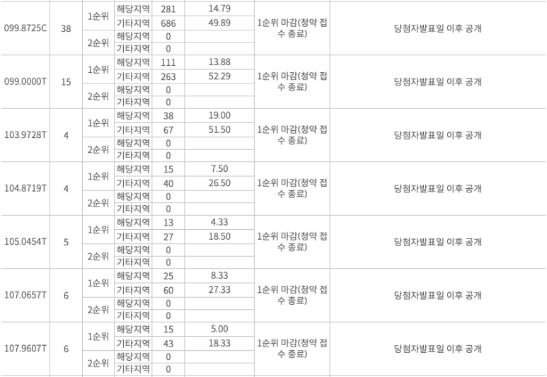 최저 3.27:1, 최고 112.33:1의 경쟁률을 보였고 아무래도 높은 분양가 때문인지 생각보다는 낮은 경쟁률을 보인거 같습니다.