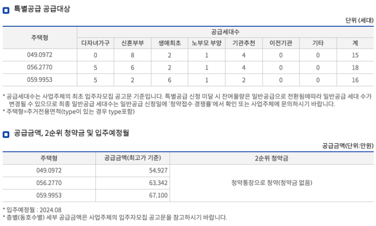 총 156세대 중 106세대를 특별공급 49세대, 일반공급 57세대로 진행합니다.